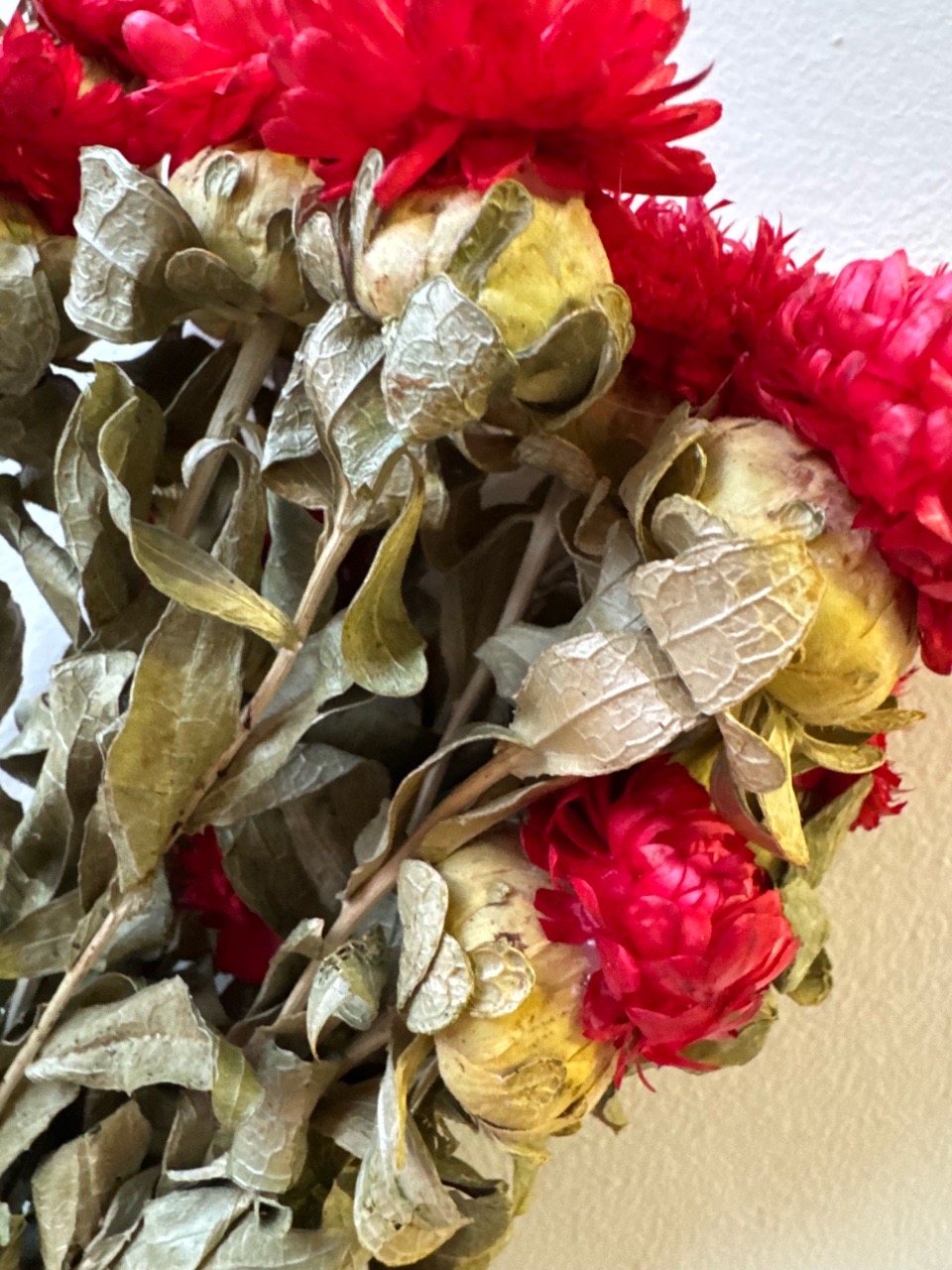 Внимание! Цветок собранный из природных материалов, различных сухоцветов и склеен вручную. Могут быть видны следы клея, лепестки быть не ровными.