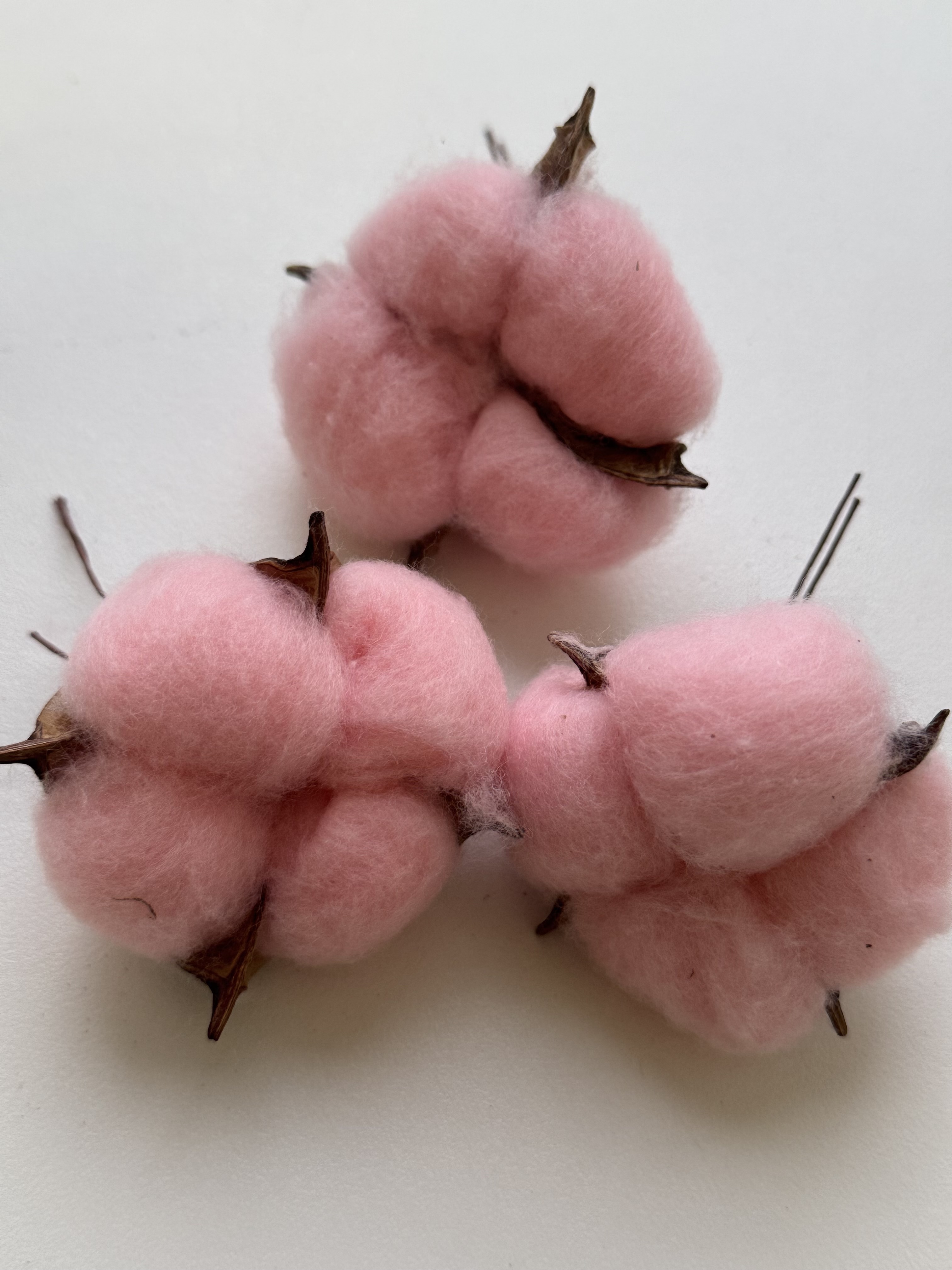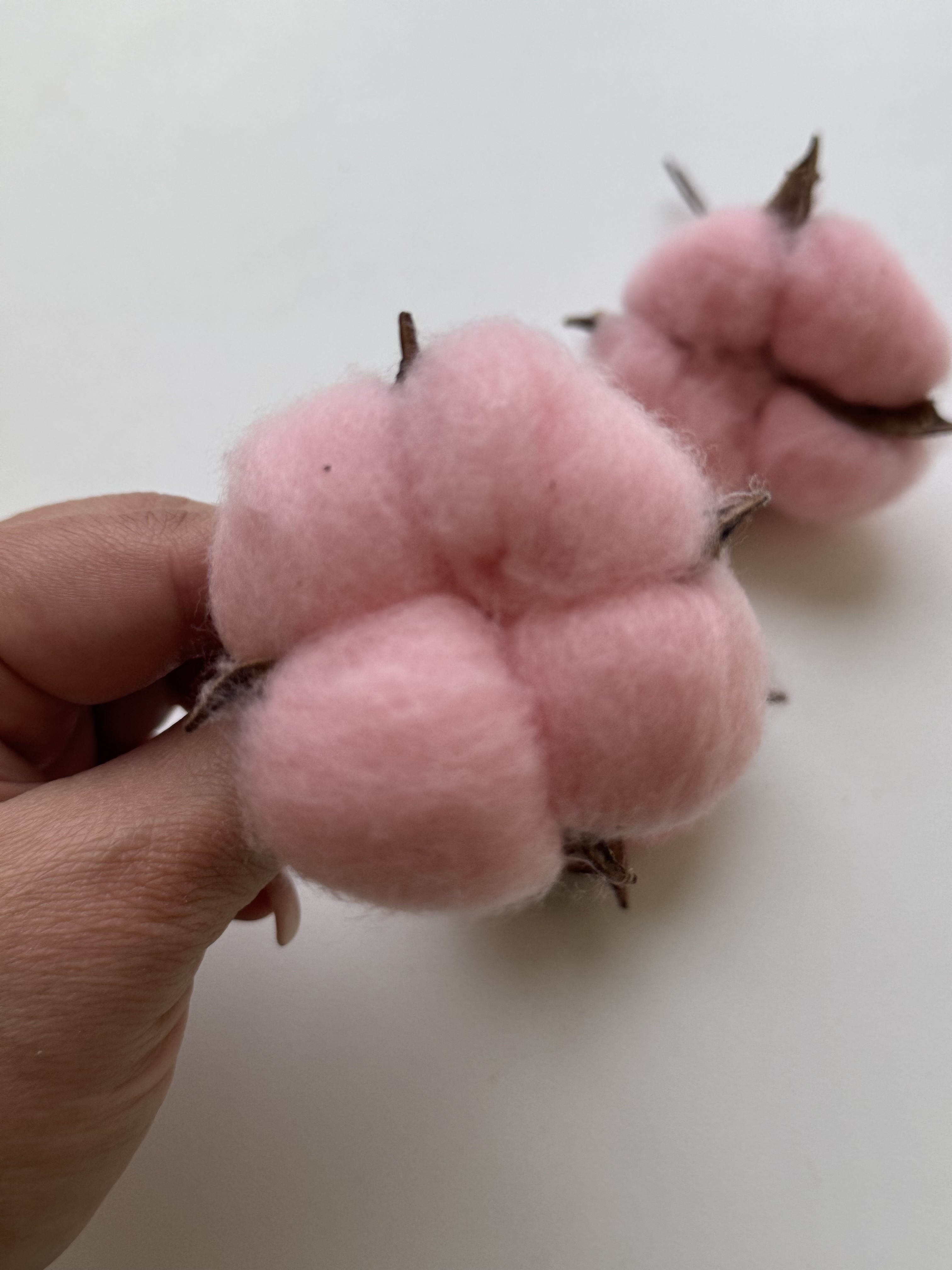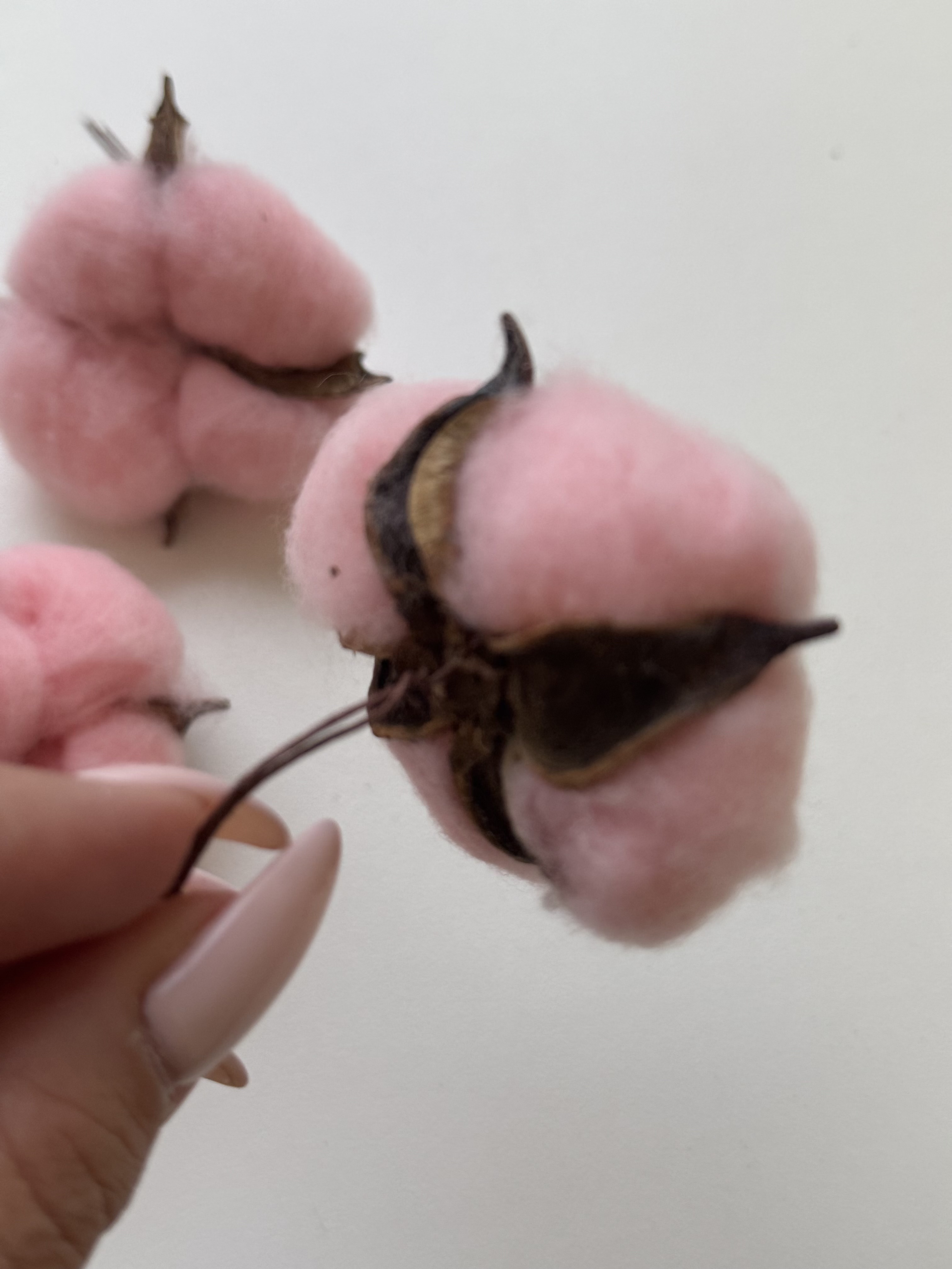 Хлопок Нежно-розовый с натуральными волокнами на проволке (цена за 1 шт)