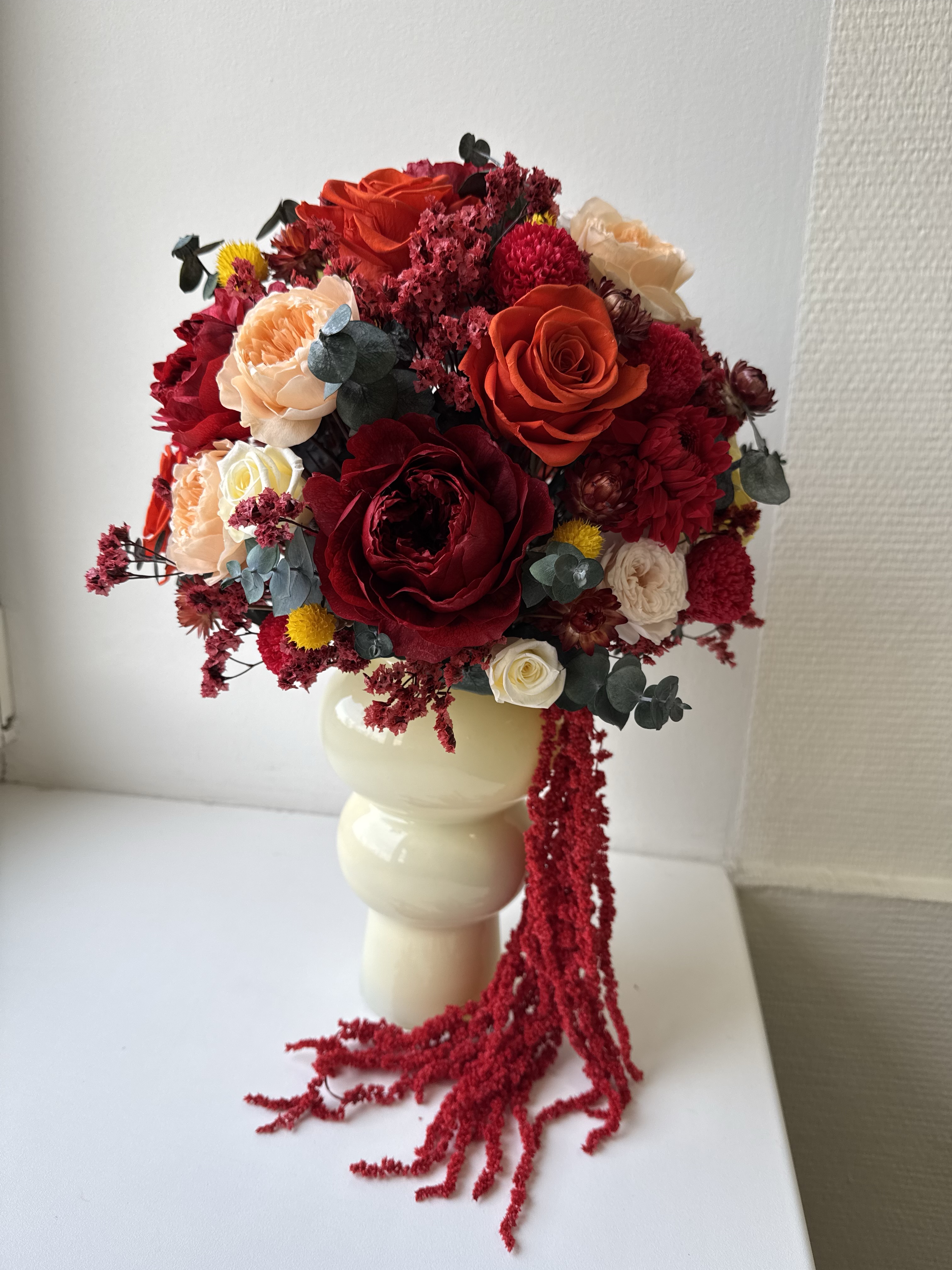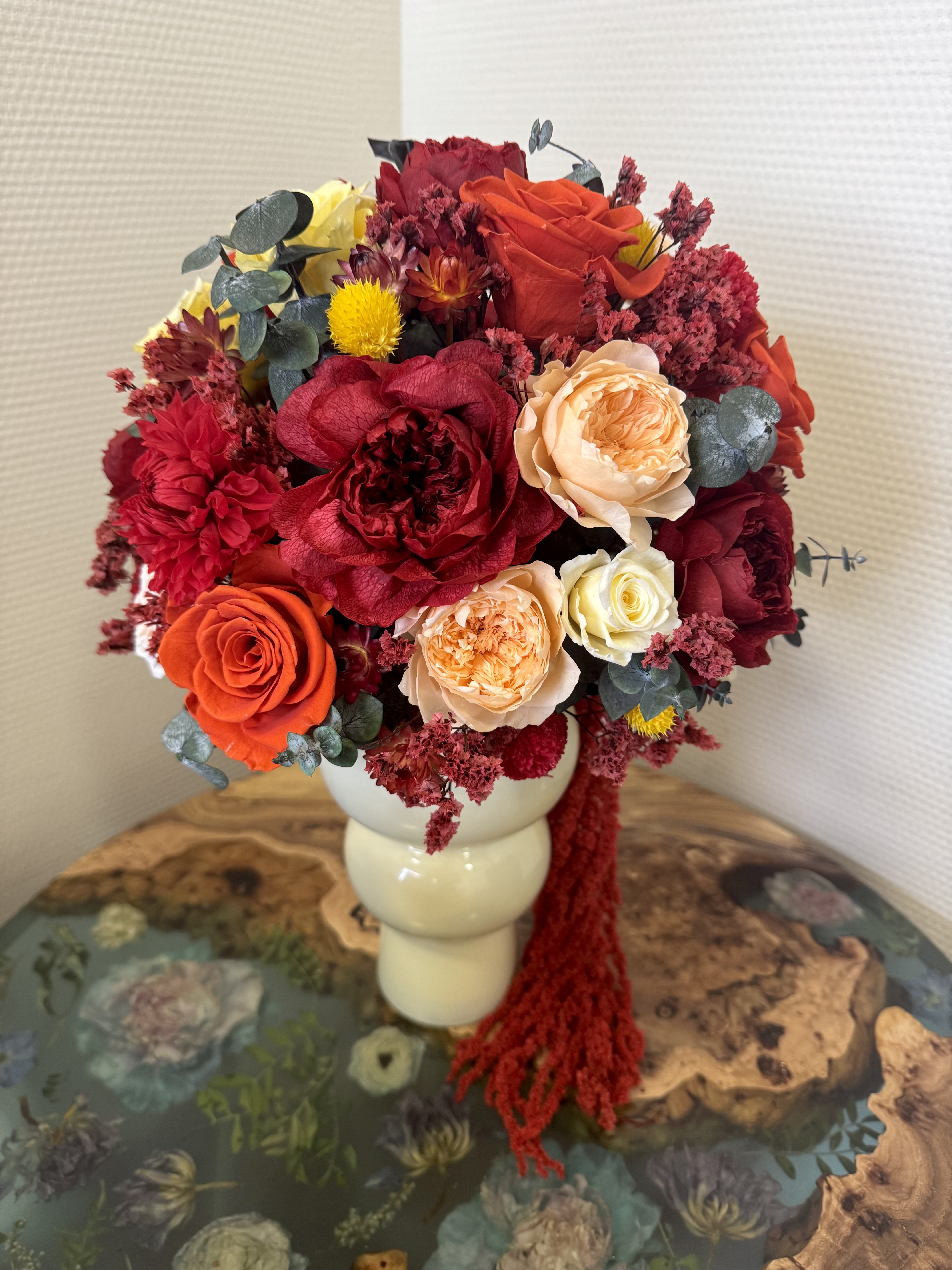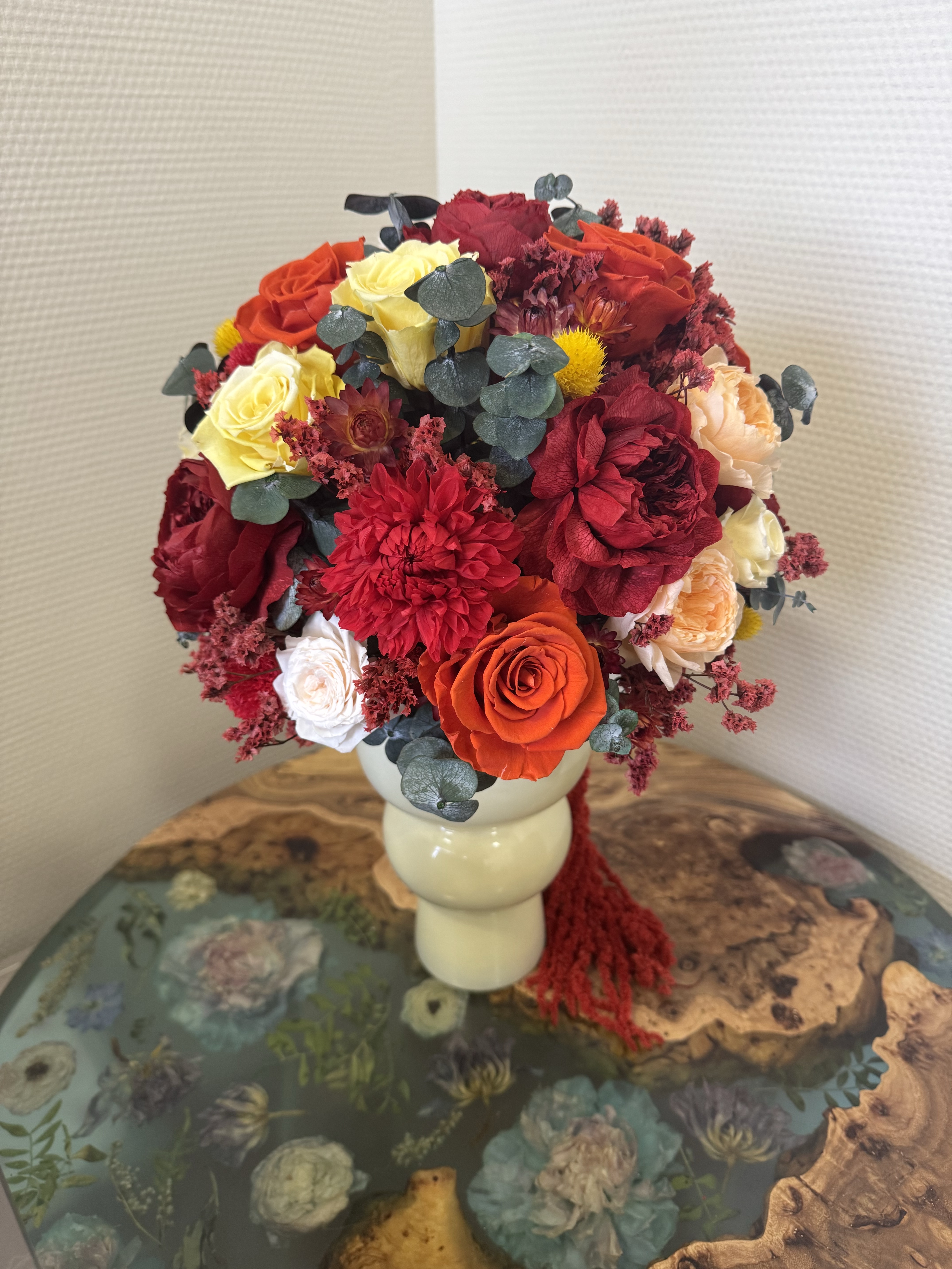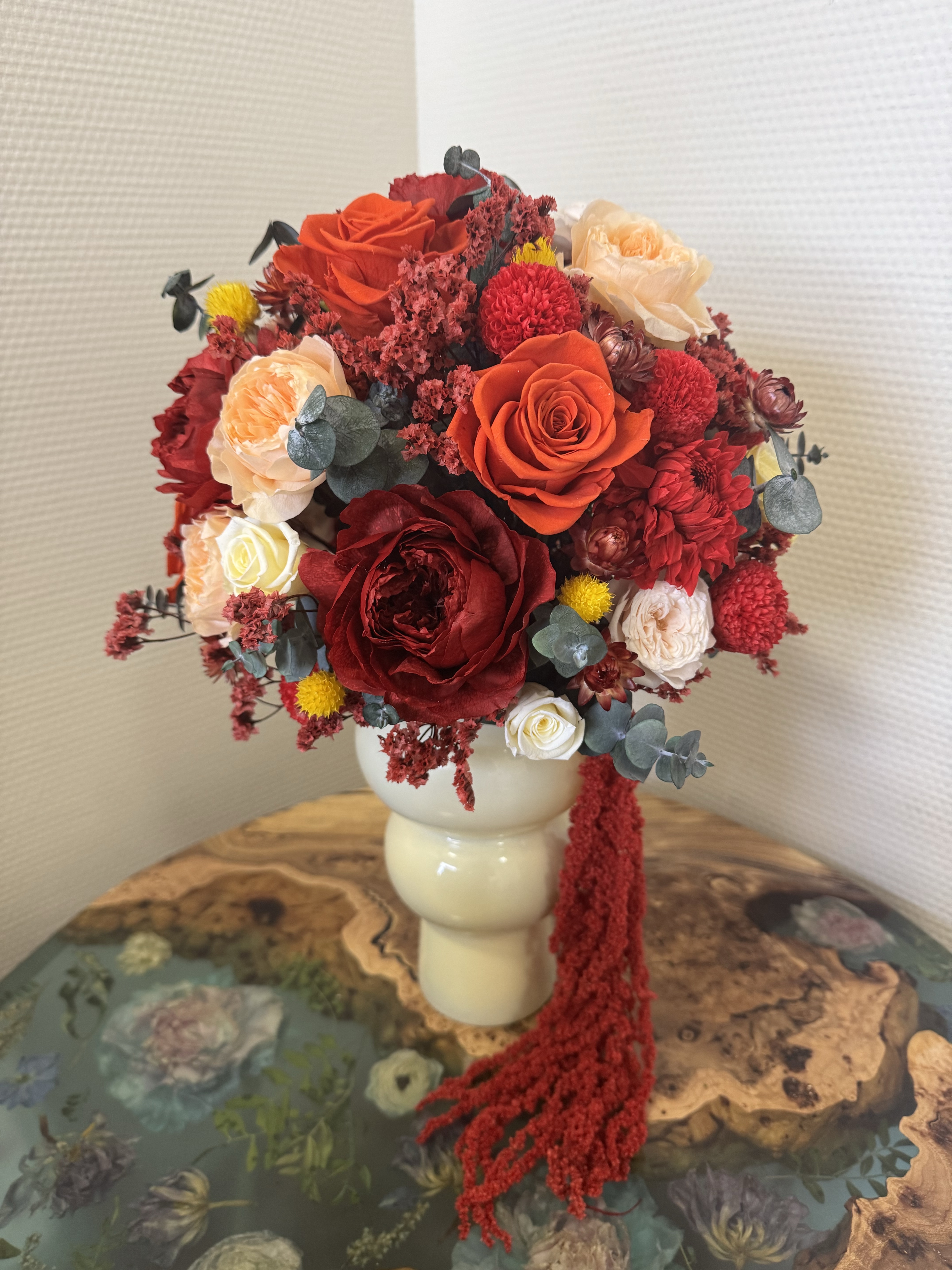 Таким цветам не требуется вода и специального ухода, композиция прослужит не один год.