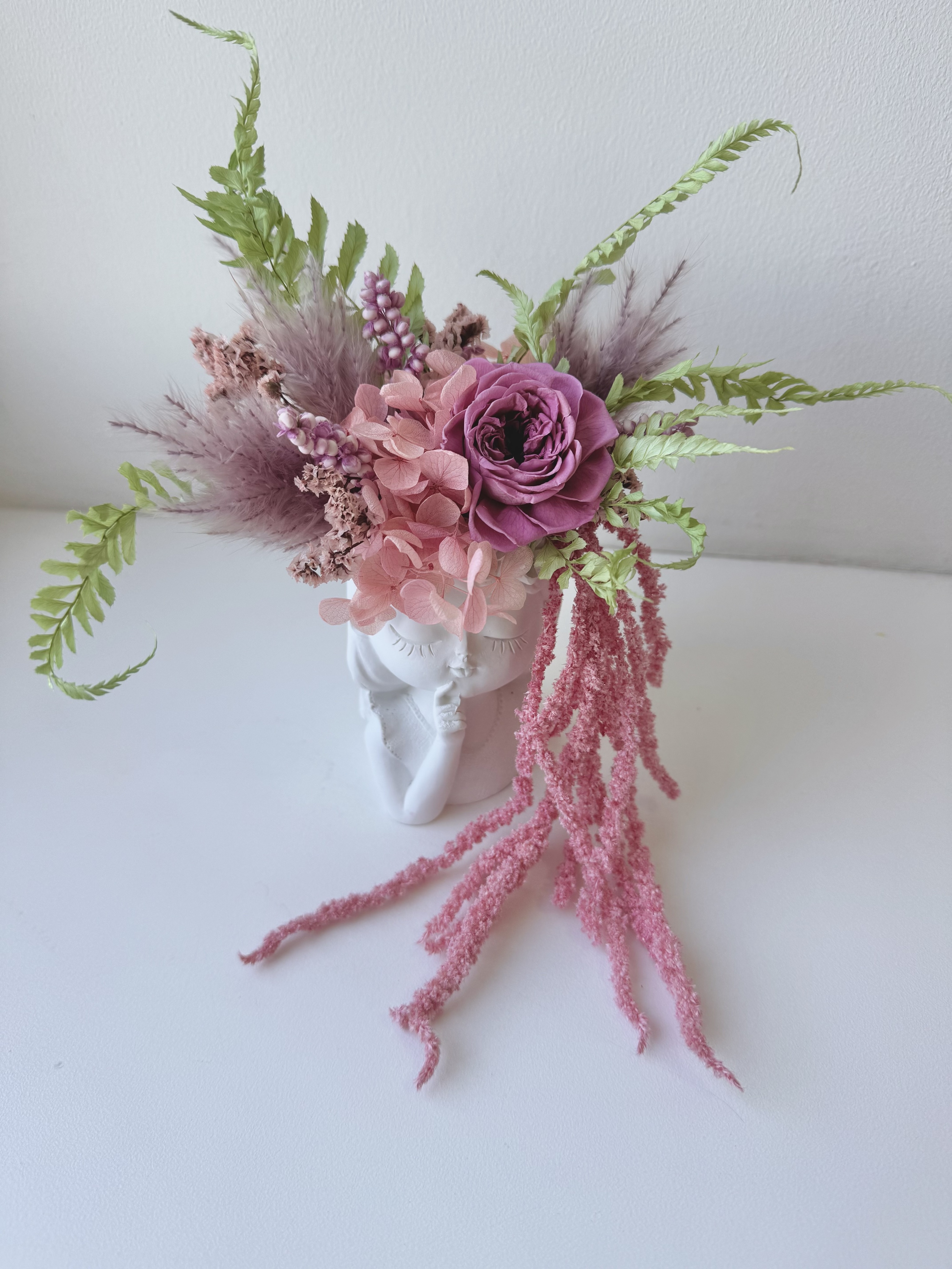 Интерьерная композиция выполнена из стабилизированных растений