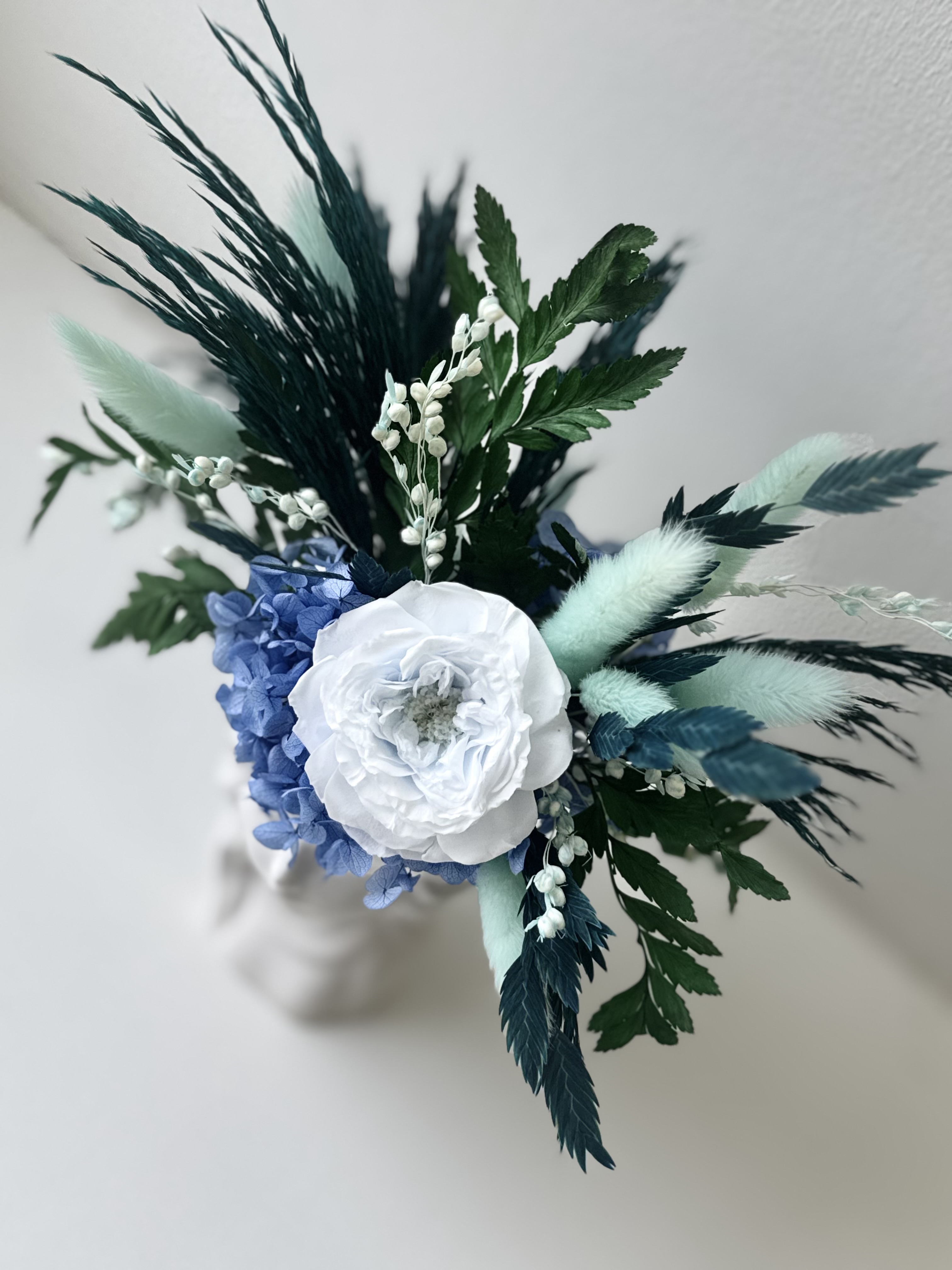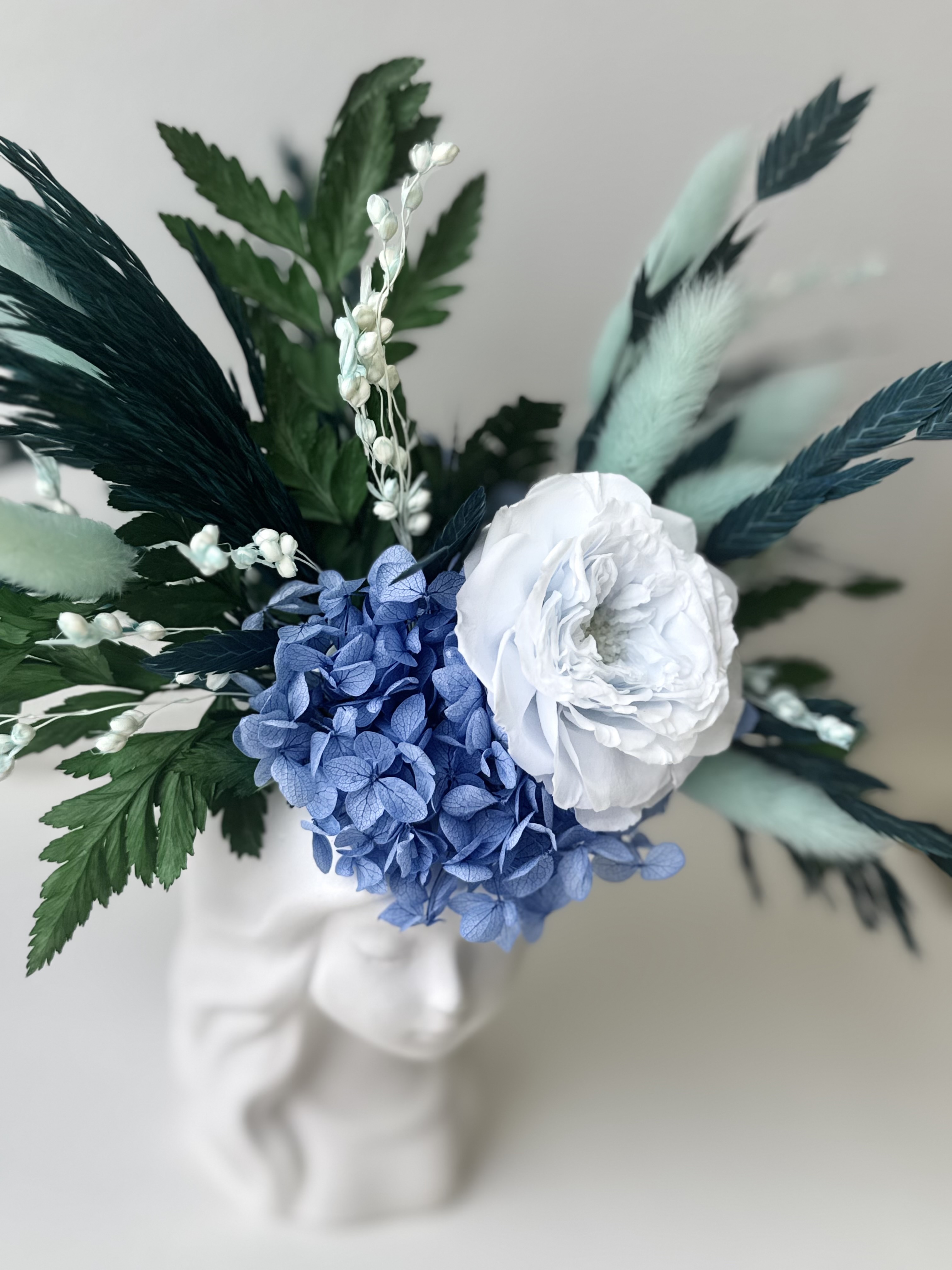 Интерьерная композиция выполнена из стабилизированных растений