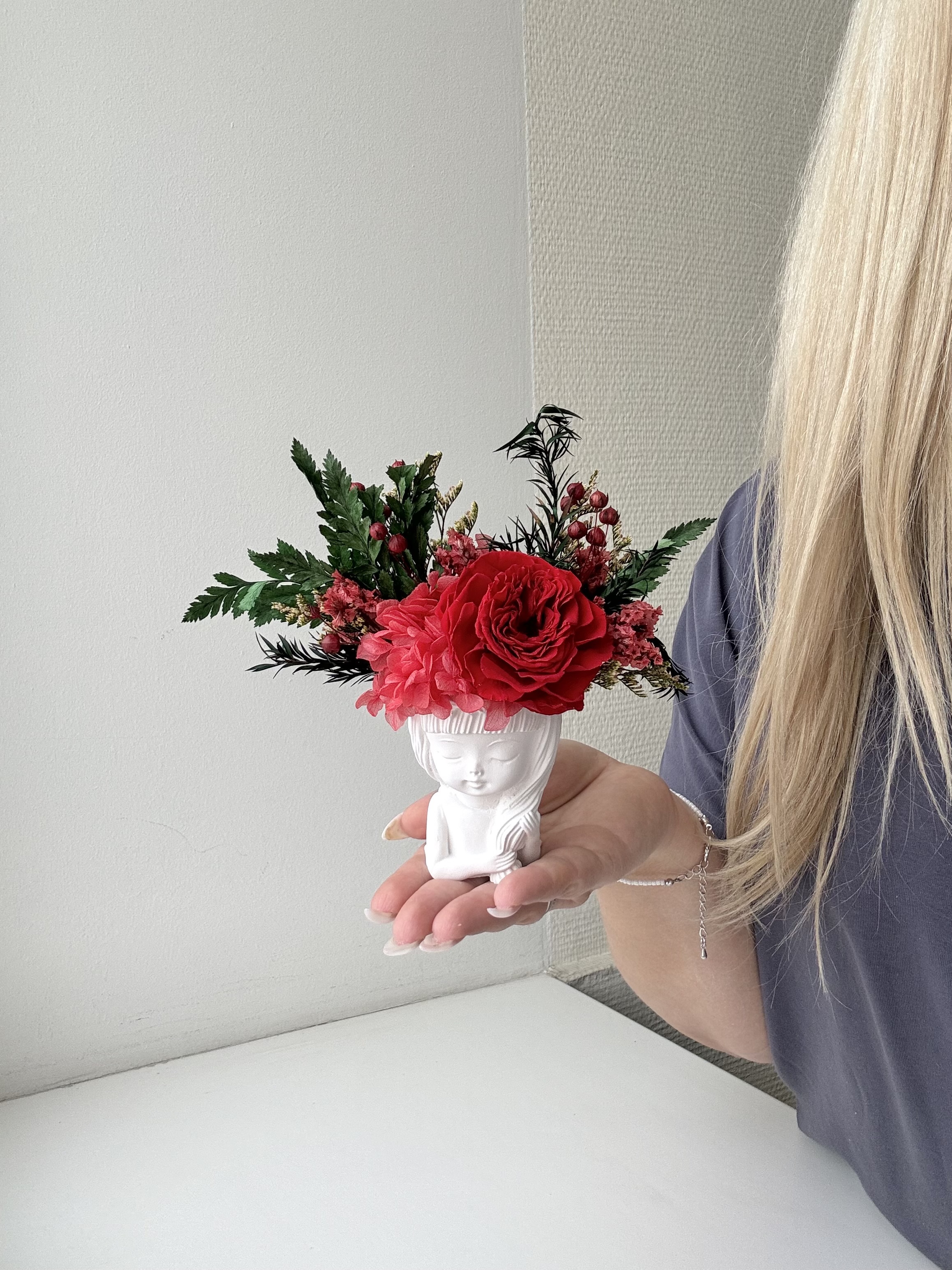 Таким цветам не требуется вода и специального ухода, композиция прослужит минимум один год.