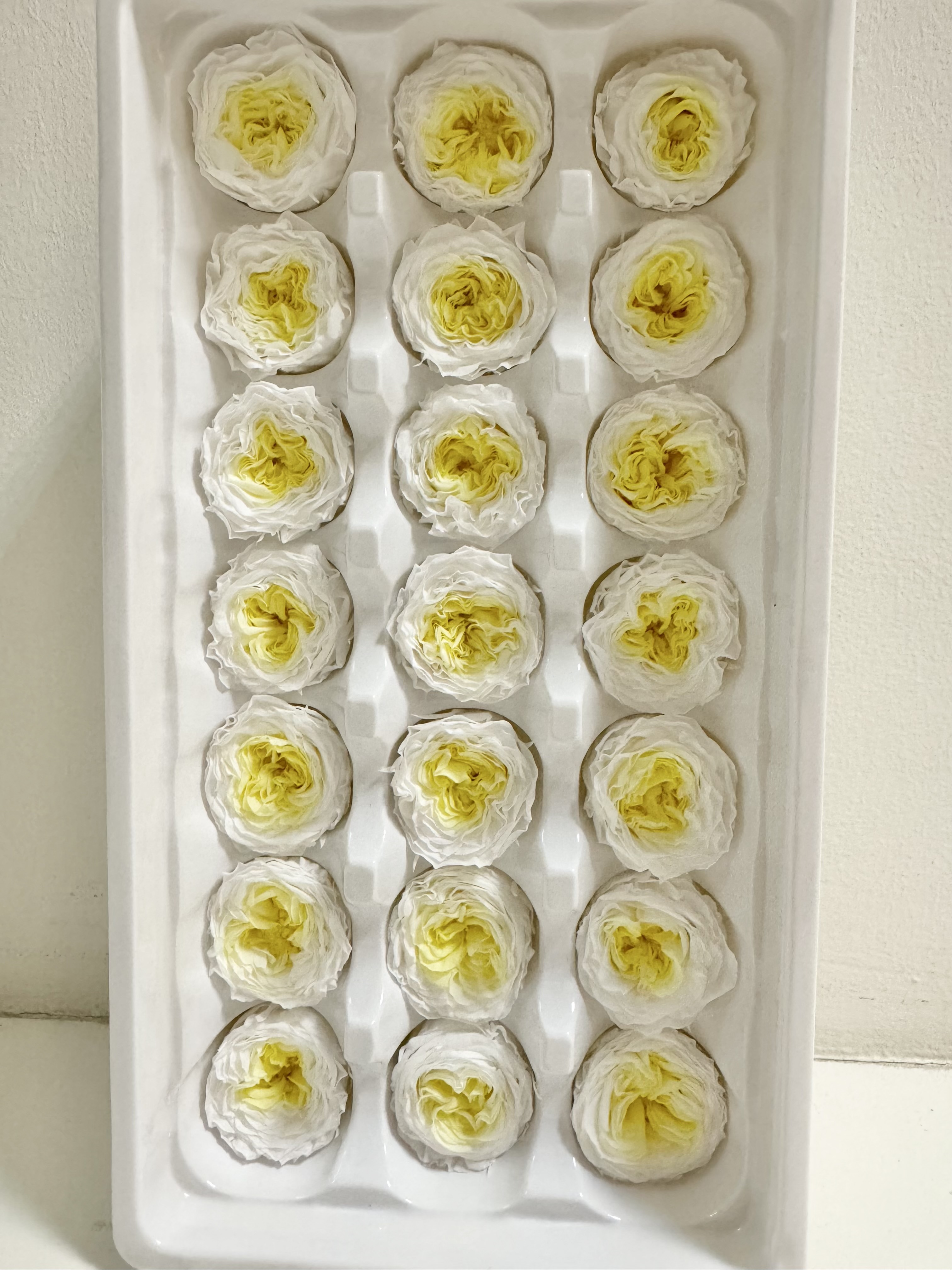 Роза пионовидная 2-3 см Белая с желтым дыханием (половина коробки-10шт)