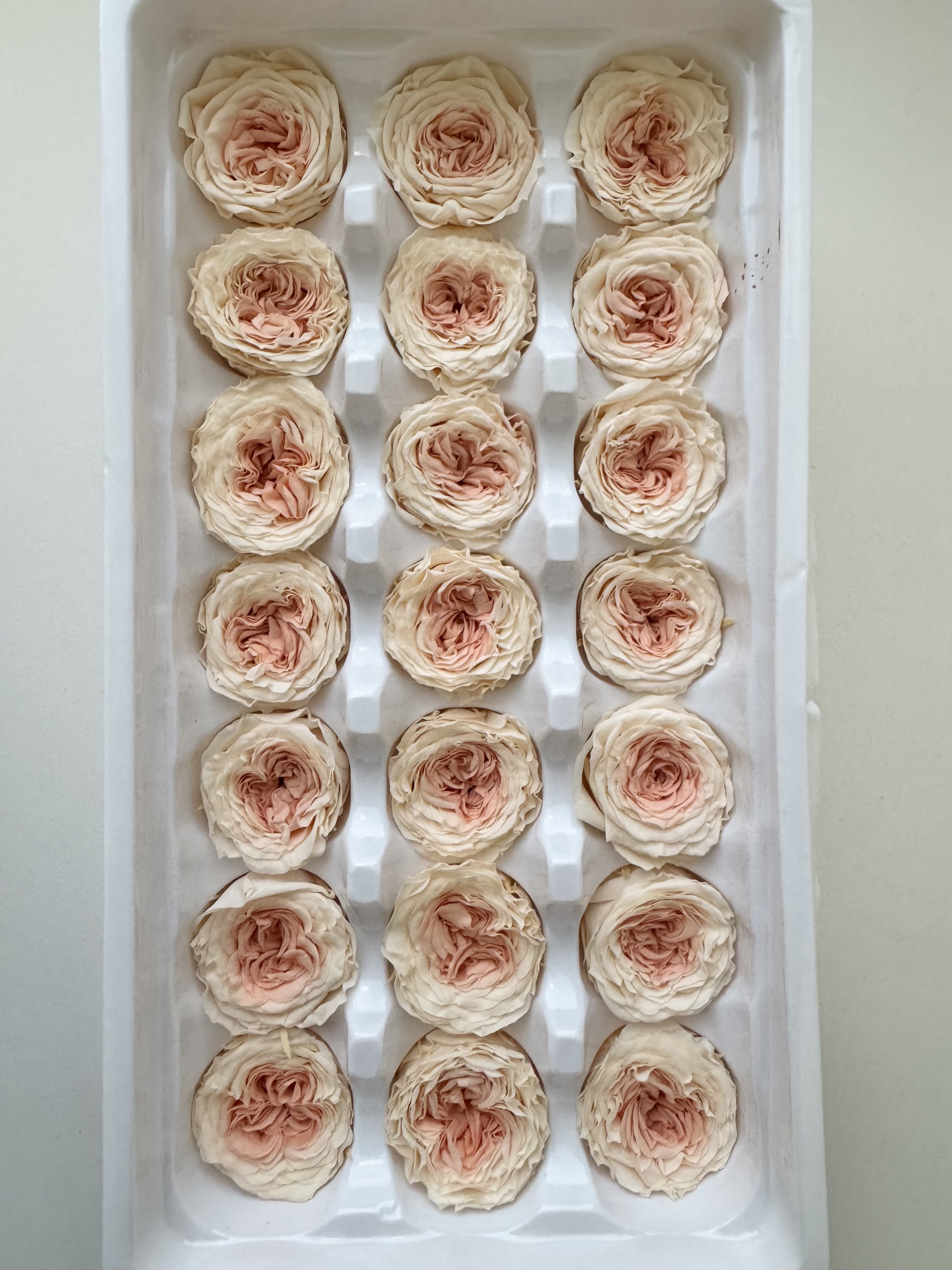 Роза пионовидная 2-3 см Нежно-персиковый с насыщенно-персиковым дыханием (половина коробки-10шт)